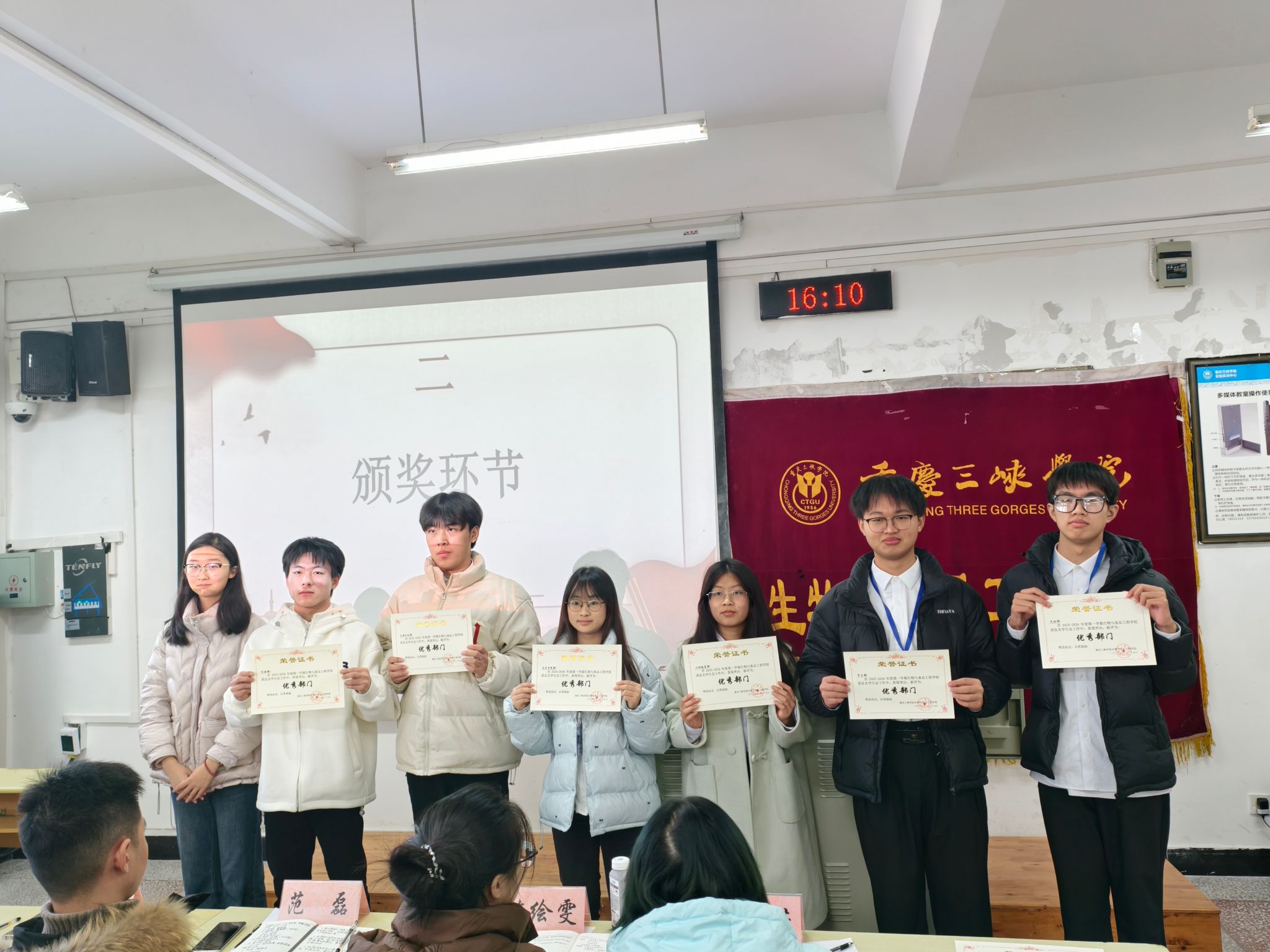 述职环节结束后,大会进入表彰阶段,由学生会主席团为表现优异的部门颁发奖状。随后,范磊老师作总结发言。他对各部门的工作给予充分肯定,并指出成绩的取得离不开每一位成员的共同努力。范老师希望全体成员进一步优化工作方法,提升工作效率,持续保持积极热情,为学院发展贡献更多智慧与力量。