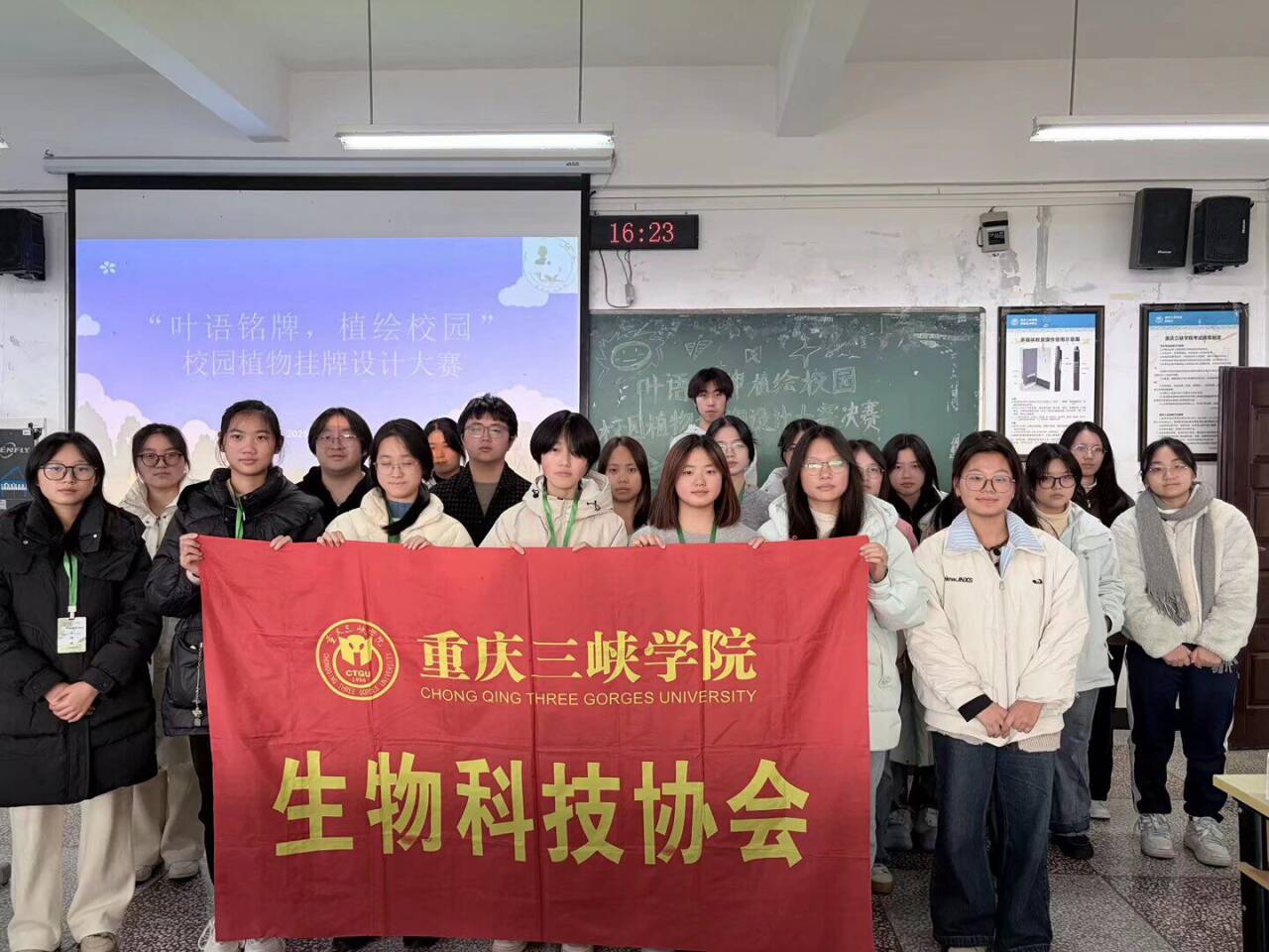 2025年12月25日,由我院生物科技协会主办的“叶语铭牌,植绘校园”校园植物挂牌设计大赛决赛在明辨楼2-301顺利举行。本次活动融合植物学知识与艺术设计,旨在激发学生的创新思维,增强校园生态保护意识与人文关怀意识。同学们踊跃参与,初赛阶段共收到来自280名选手的144份设计稿件,经专业评审打分,最终15份优秀作品入围决赛。