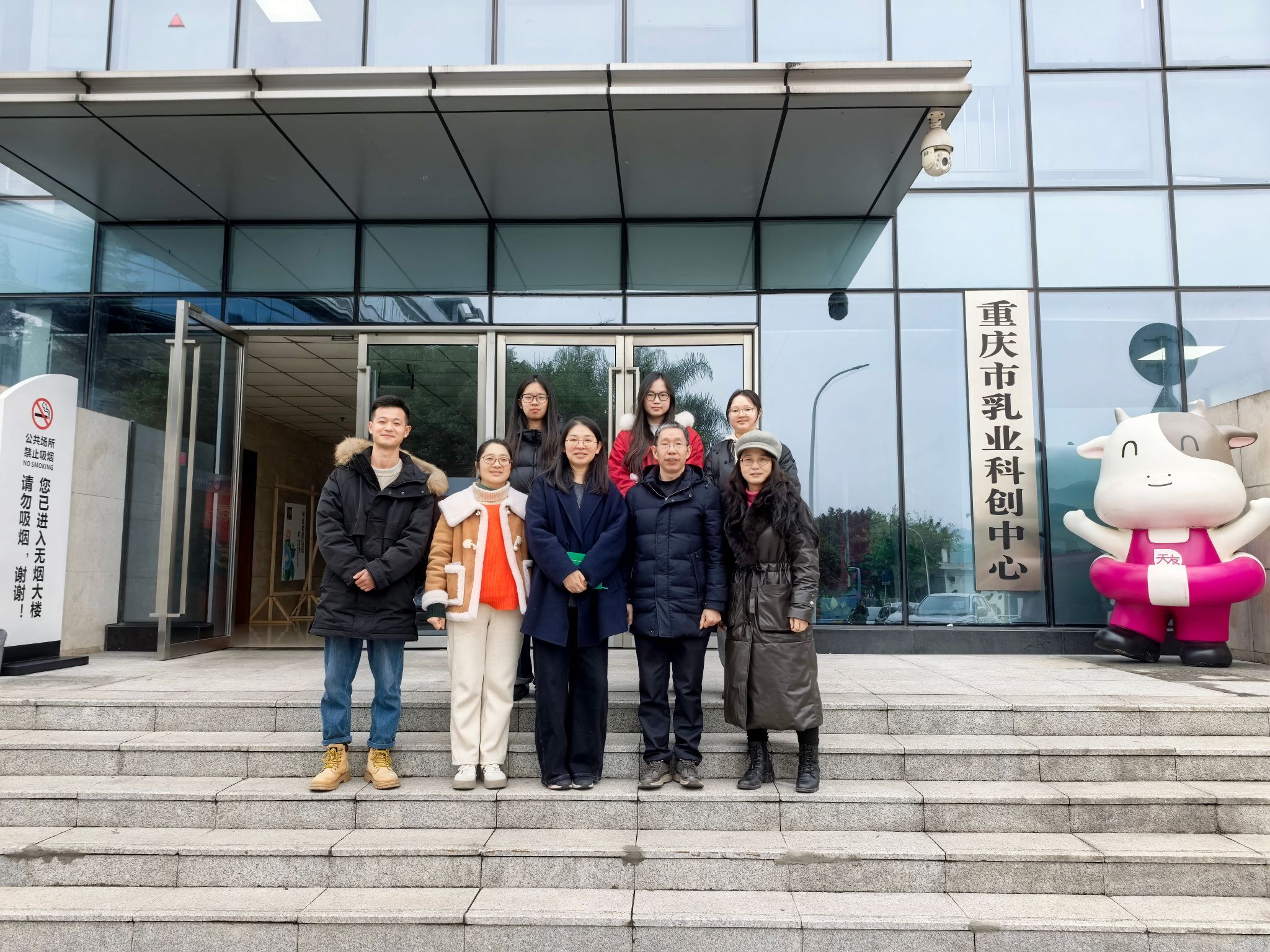 肖国生书记一行首先抵达重庆市天友乳业股份有限公司。在企业方的陪同下,师生们参观了天友乳业先进的技术中心,深入了解企业在乳制品研发、质量控制及生产流程等方面的创新实践。随后,双方围绕学生实习实践、就业岗位拓展、产学研合作等内容进行了深入座谈。肖书记介绍了学院的专业特色、人才培养成果及2026届毕业生情况,表达了深化校企合作的意愿。天友乳业相关负责人对公司发展、人才需求及培养体系进行了说明。座谈会上,学院领导还与正在天友实习的2026届毕业生进行了亲切交流,关心他们的实习收获与生活情况。