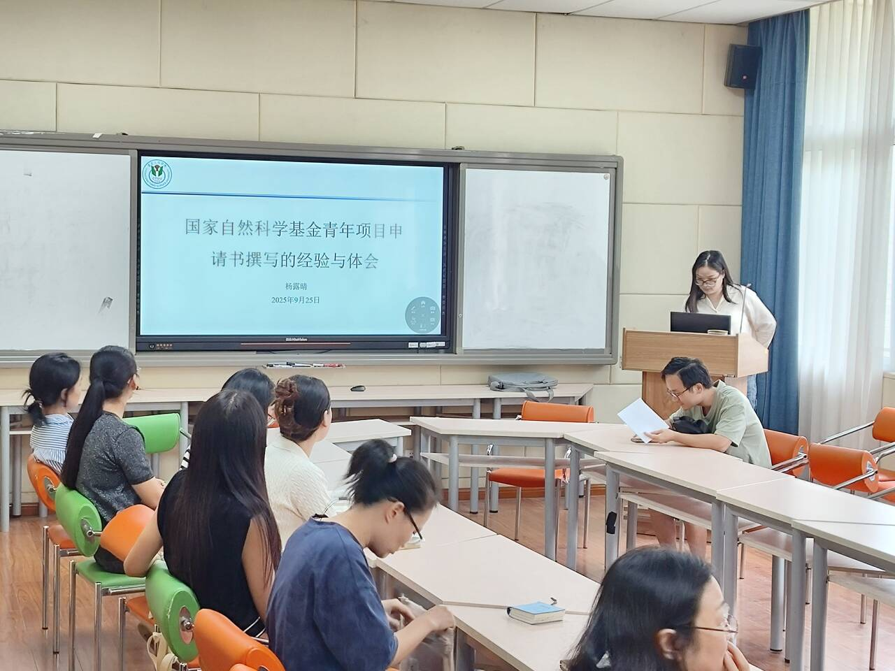 为加强学科建设,促进教师发展,进一步提升2026年国家级科研项目申报的质量,我院于9月25日下午顺利举办国家自然科学基金申报经验分享会。此次会议邀请了2025年度国家自然科学基金青年项目获得者杨露晴博士担任主讲人,学院青年教师积极参与讨论学习。