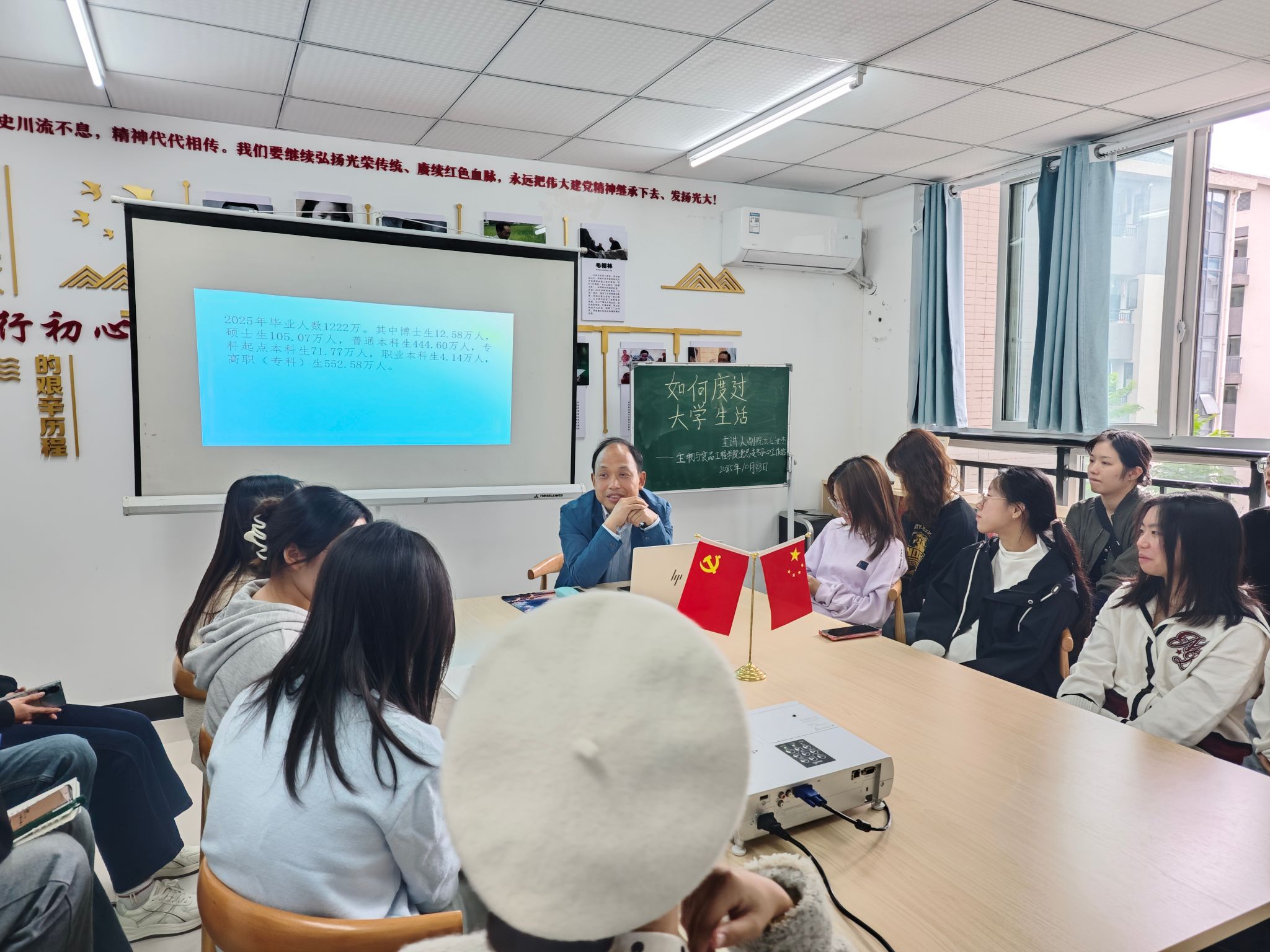 10月23日15:00,我院初心工作站于蓝雾苑2舍4楼活动室开展第59期“寝室工作日”活动,副院长石汝杰讲解如何度过大学生活,共计18人参加。