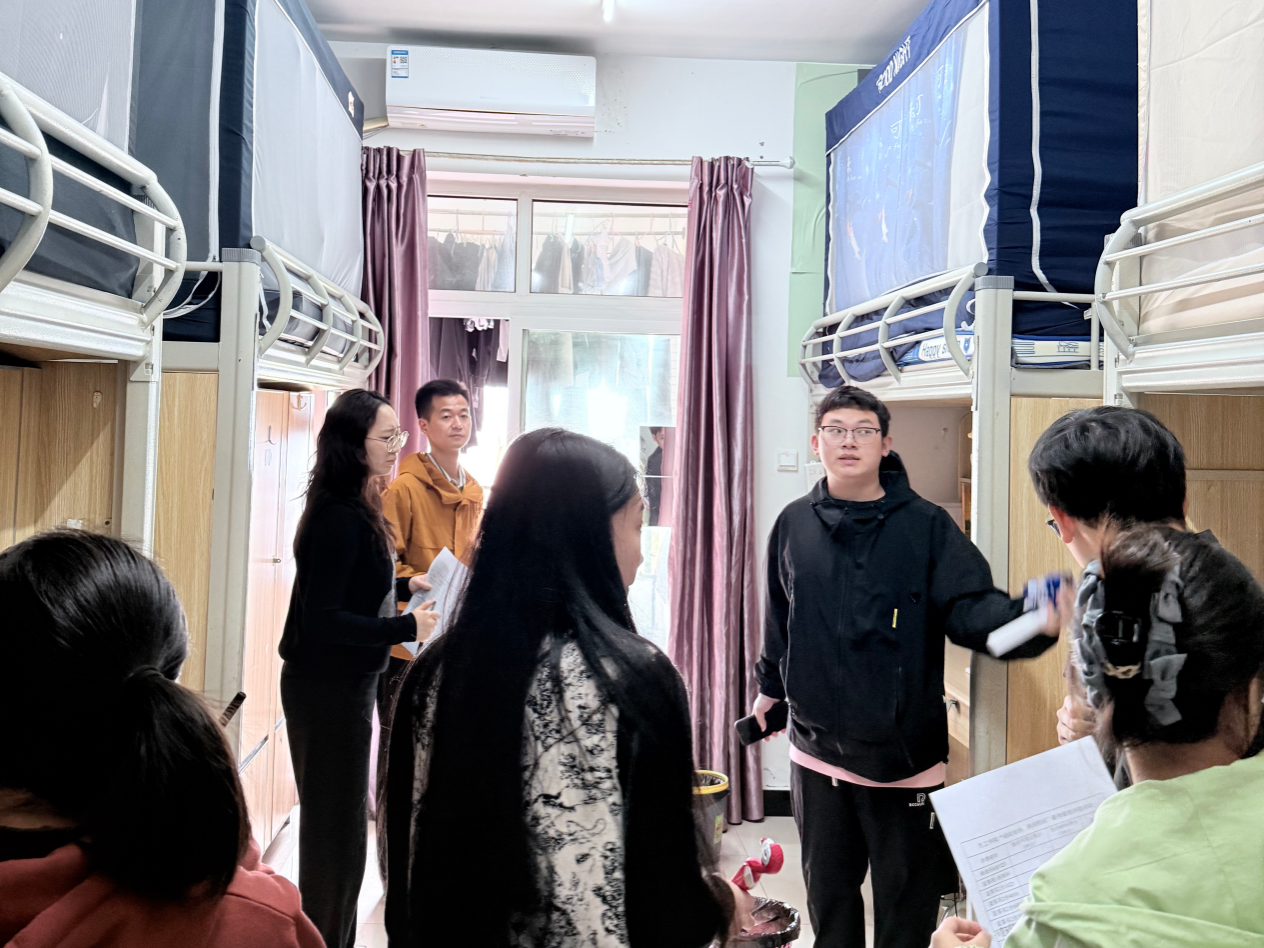 决赛现场,评审老师们依次走访各参评寝室,深入了解每间寝室的实际情况。走访过程中,各寝室成员结合PPT进行简要阐述,随后围绕寝室卫生整洁度、寝室文化建设成效、成员个人获奖情况、志愿服务时长以及整体学习成绩等核心维度,全面展示了各参评寝室的良好风貌。