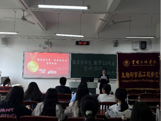 2023年5月27日,我院举办“谱青春华章、展劳动风采”宣讲活动,参与学生共计47人。