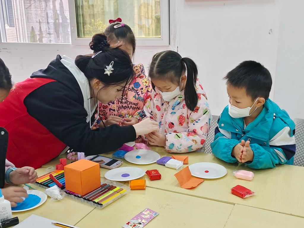 活动伊始,志愿者为小朋友们介绍了海洋保护的相关知识,包括海洋生物的概述、目前面临的危机、日本核污水投海事件以及海洋保护措施等。讲解结束后,开展超轻粘土DIY活动。简单介绍制作方法后,志愿者向小朋友们发放材料和工具,孩子们积极参与制作。在活动过程中,志愿者和小朋友一起讨论颜色搭配和模型特点,一个个别具一格的作品呈现在大家眼前。小朋友们乐于展示自己的作品并主动向志愿者分享自己的创作理念,现场氛围其乐融融。