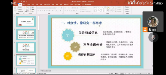 通过此次主题班会,进一步帮助我院学子了解疫情防控政策与要求,增强心理调节能力,将防疫与育心有机结合,树立科学的心理健康观念。(龚 莉)