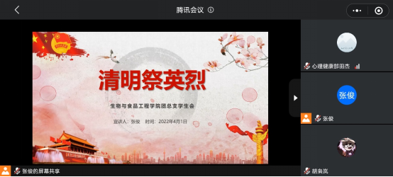 4月1日19:00,我院于线上开展“清明祭英烈”主题宣讲活动。我院全体团学学生骨干参会。