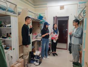 2021年4月29日下午,我院特色文明寝室创建展示活动的第二阶段:走访寝室,学工办主任李华林,辅导员许美琳、熊小飞、龚莉参与评选,进一步了解参赛寝室情况,推选出“优秀特色文明寝室”。