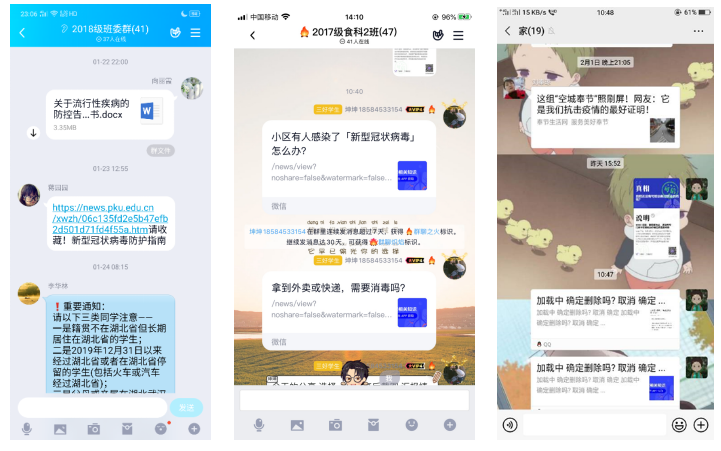 (4)辅导员、学生干部每天以群分享、朋友圈分享等多形式向家人、朋友、同学宣传疫情实时信息和防控信息等至少1次,让身边人高度重视疫情,为打赢这场防疫站贡献微薄力量。