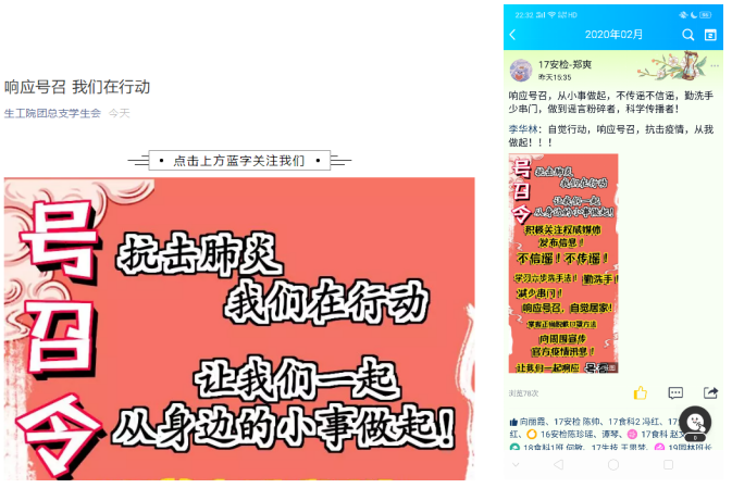 (3)团总支学生会发布号召令,号召青年学生自觉居家,做共产主义接班人,行动起来,从小事做起。