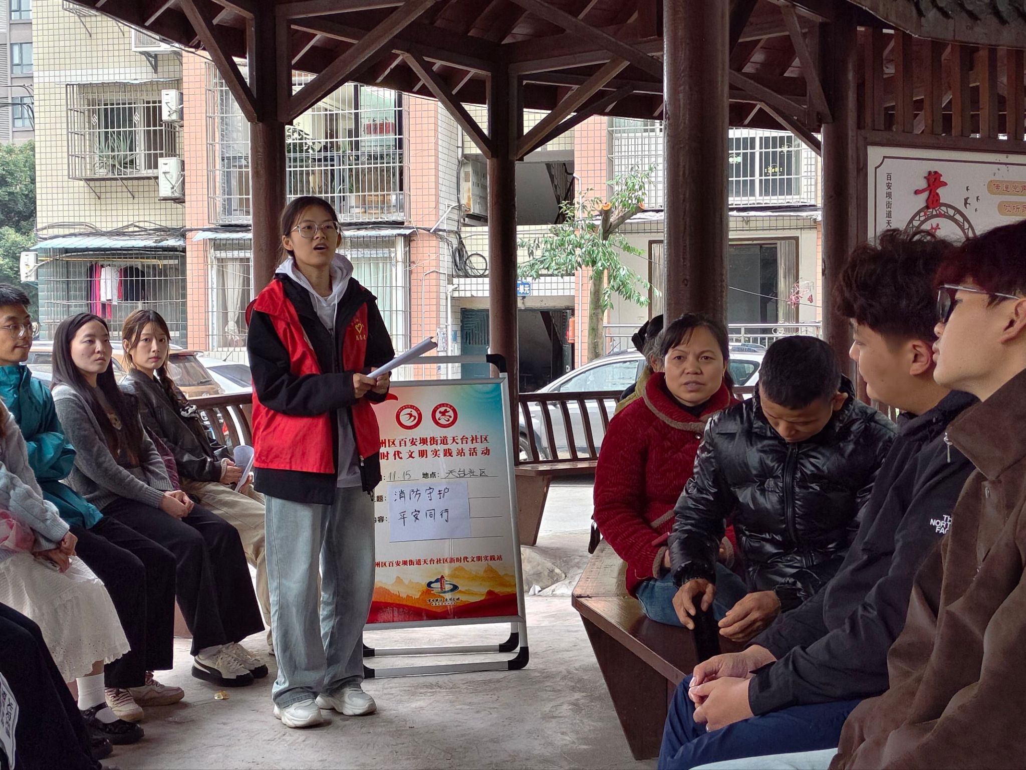为切实提高社区居民的消防安全意识和应急自救能力,有效预防和减少火灾事故发生,11月15日,我院志愿者服务队走进天台社区,组织开展了以“消防安全,平安同行”为主题的社区安全教育活动。